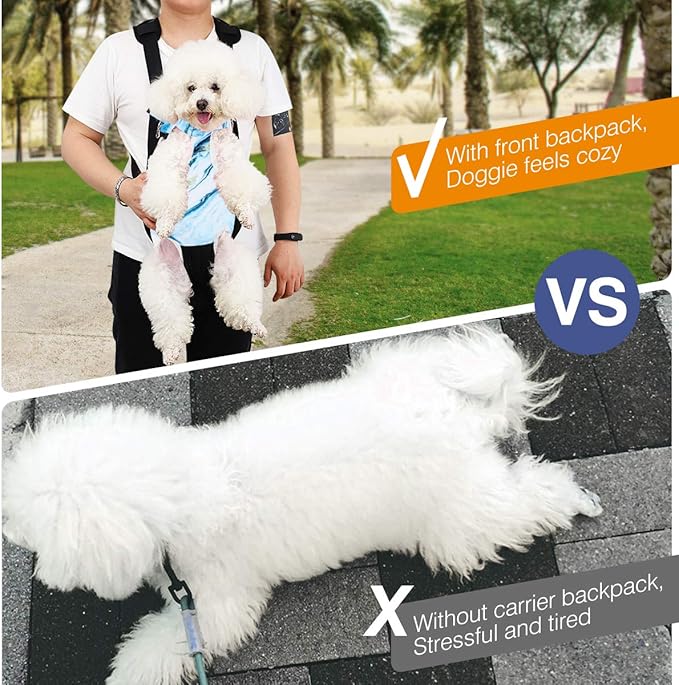 • 🐶【Two Ways of Wearing】: A hands-free pet carrier can be worn on your front side or your backside if you like, it keeps you closer and increases pet's sense of security when you carry your cat or dog around. Meanwhile, the thickened sponge pad helps to relieve the burden of your shoulder.