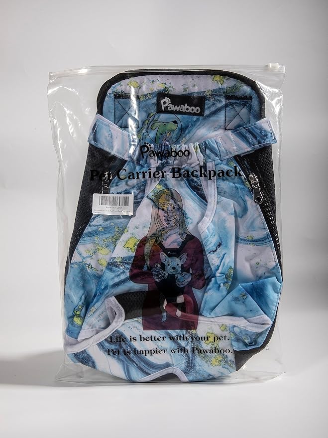 Pawaboo Pet Carrier Backpack, Adjustable Pet Front Cat Dog Carrier Backpack Travel Bag, Legs Out, Easy-Fit for Traveling Hiking Camping for Small Medium Dogs Cats Puppies, Large, Blue Marble