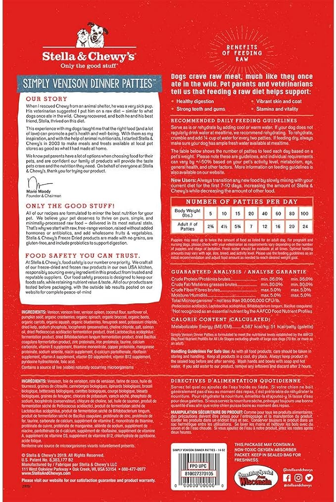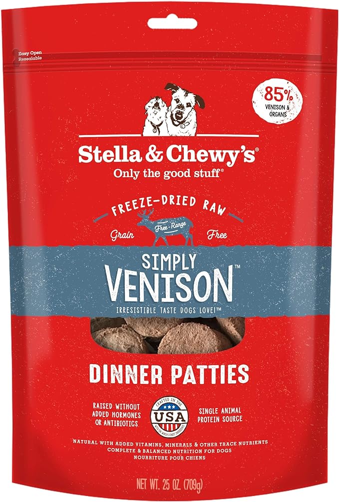 Stella & Chewy's Freeze Dried Raw Dinner Patties – Grain Free Dog Food, Protein Rich Simply Venison Recipe – 25 oz Bag