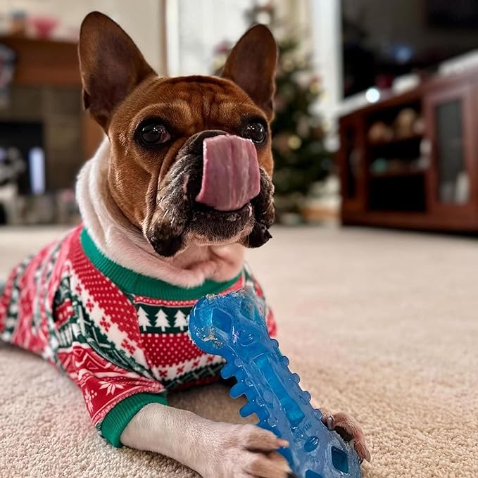 • Freeze with treats or water for a longer-lasting chewing challenge!