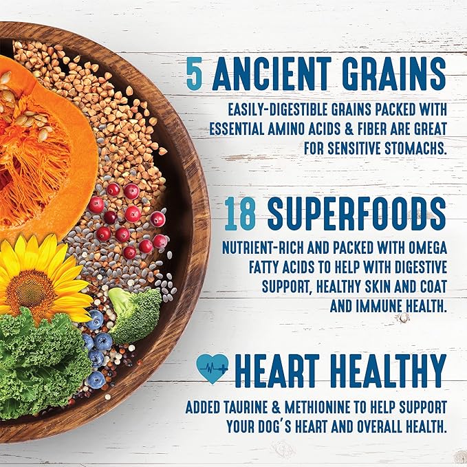 • Enhanced with 18 superfoods, such as blueberries, Kale, Spinach and carrots, that are nutrient-rich and packed with Omega fatty acids to help with digestive support and healthy skin and coat.