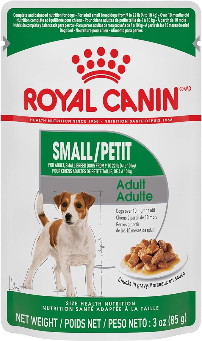 • TASTY CHUNKS IN GRAVY: Easy-open pouch and soft dog food texture is simple to serve and pairs perfectly with Royal Canin Small Adult and Small Adult 8+ Dry Dog Food