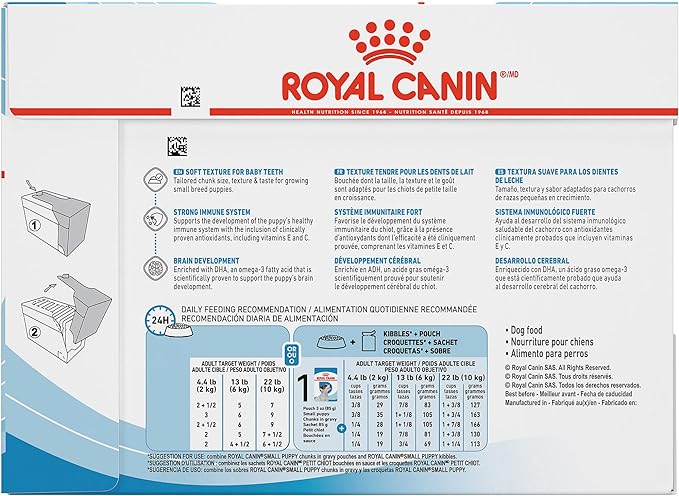 • FORMULATED FOR SMALL BREED PUPPIES: Royal Canin Small Breed Puppy Wet Dog Food is formulated for puppies from 2 to 10 months old with an expected adult weight of up to 22 lb