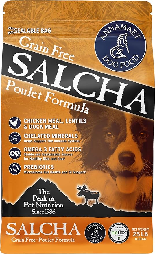 • Our poultry formula is made with low ash chicken and duck, Annamaet Salcha is very palatable and has helped many dogs with sensitive skin and coat