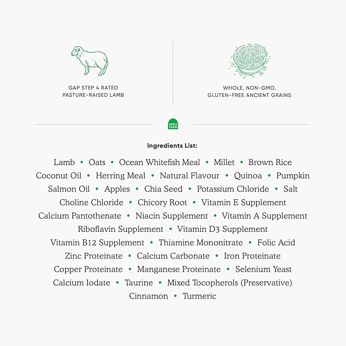 Open Farm Ancient Grains Dry Dog Food, Humanely Raised Meat Recipe with Wholesome Grains and No Artificial Flavors or Preservatives (Pasture Raised Lamb Ancient Grain, 11 Pound (Pack of 1))