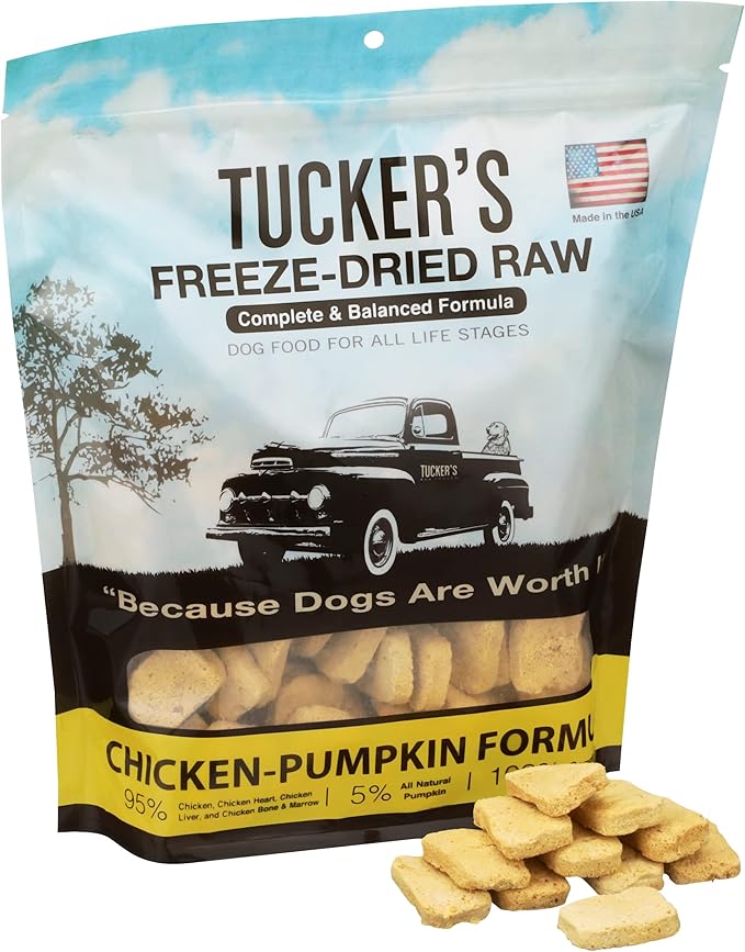 • Tucker's Freeze Dried Raw Dog Food in Chicken & Pumpkin Formula in 14 ounce bag