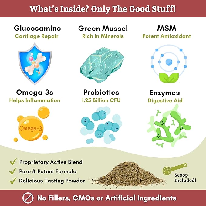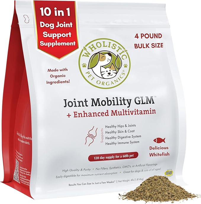Wholistic Pet Organics Joint Supplement: Joint Mobility with Green Lipped Mussel Daily Joint Health Supplements for Dogs - Dog Glucosamine Powder with MSM, Probiotics, Vitamins, Minerals - 4 Lb