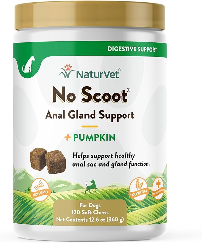 NaturVet - No Scoot for Dogs - 120 Soft Chews - Plus Pumpkin - Supports Healthy Anal Gland & Bowel Function - Enhanced with Beet Pulp & Psyllium Husk