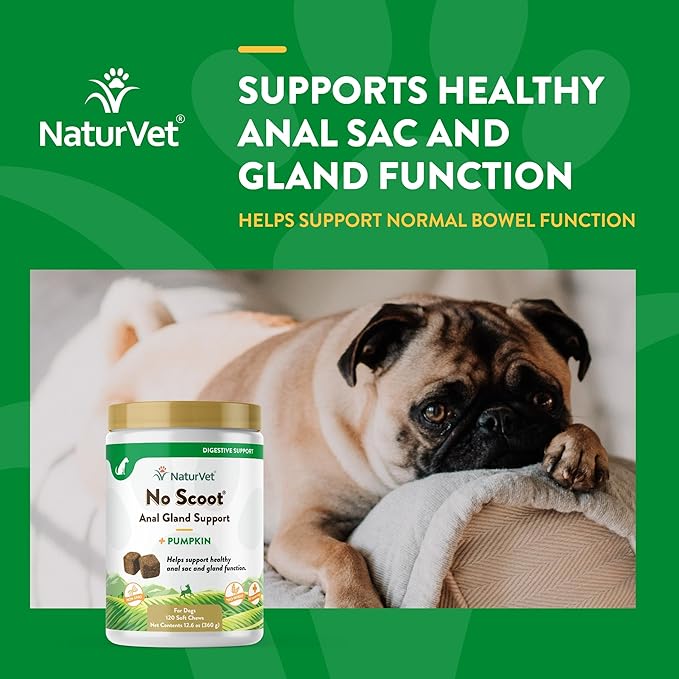 • DOG HEALTH SUPPLEMENTS FOR HEALTHY ANAL GLAND FUNCTION: Help support your dog’s anal gland and bowel functions with this NaturVet No Scoot Dog Supplement that features a rich blend of healthy ingredients to increase fiber intake.