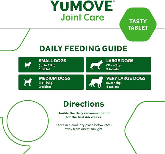 • *YuMOVE Joint Care is scientifically proven to work in 6 weeks by an in vivo, double blind, placebo-controlled, objectively measured canine clinical study by the Royal Veterinary College UK (excludes YuMOVE for Young Dogs).