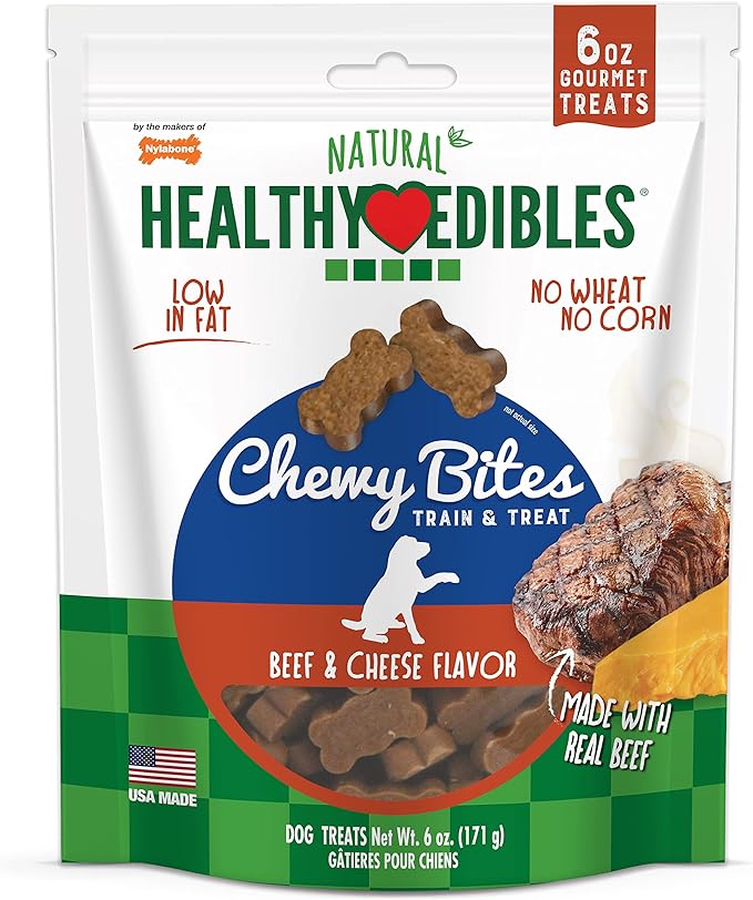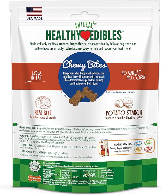 Nylabone Healthy Edibles Chewy Bites Dog Training Treats Beef & Cheese 6 oz.