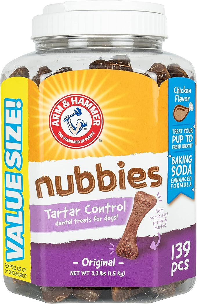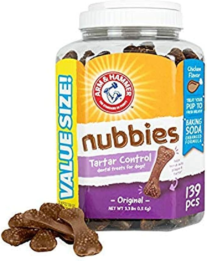 Arm & Hammer for Pets Nubbies Tartar Control Dental Treats for Dogs, Value Pack, 139 Pieces | Dental Chews Fight Bad Dog Breath, Plaque & Tartar | Chicken Flavor