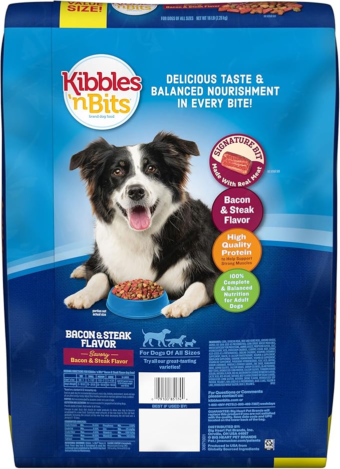 • Contains one (1) 16 pound bag of Kibbles 'n Bits Bacon & Steak Dry Dog Food