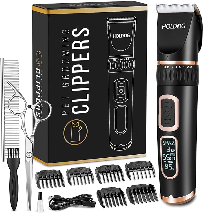 Dog Clippers Professional Heavy Duty Grooming Clipper 3-Speed Low Noise High Power Rechargeable Cordless Pet Tools for Small & Large Dogs Cats Pets with Thick Coats
