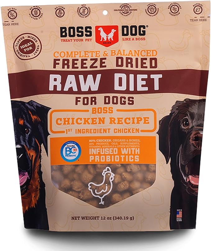Boss Dog Brand Complete & Balanced Freeze Dried Raw Diet for Dogs Chicken Recipe, 12-oz Bag…
