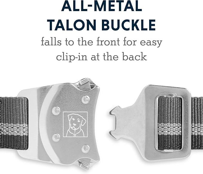• All-metal buckle: Our all-metal Talon Buckle is strong, reliable, and easy to use; It acts as a ballast to keep the leash attachment point at the top of your dog's neck for quick and easy clip-in