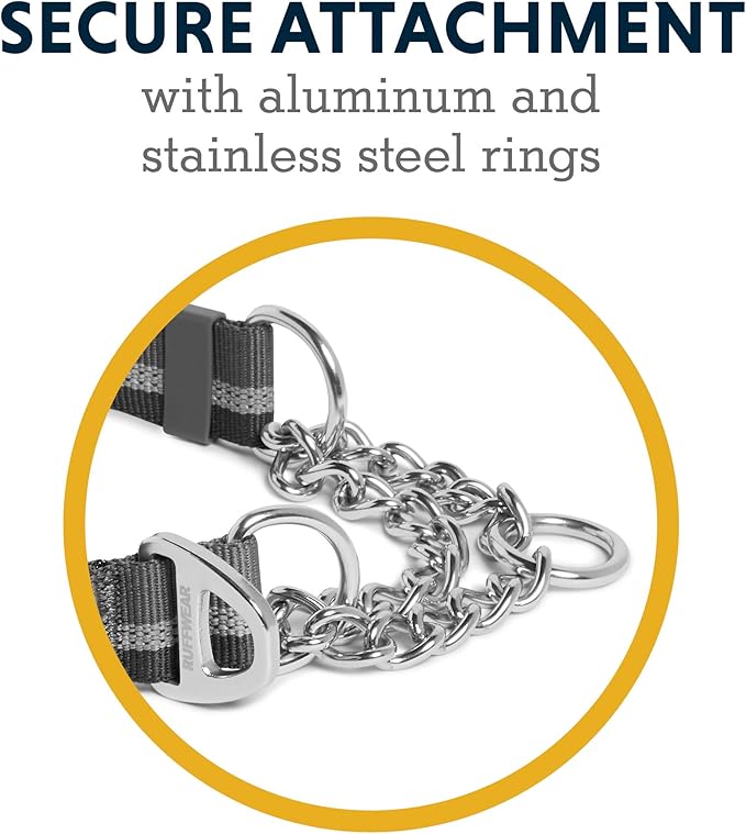 • Multi-use: Attach your leash to the stainless steel O-ring on the chain to engage the limited-cinch martingale function or to the aluminum V-ring to use as a regular collar for everyday walks and play