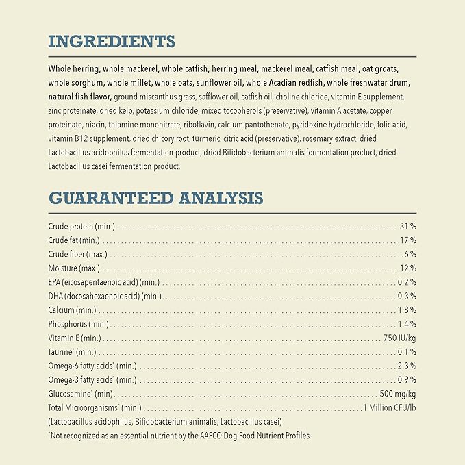 • High protein dog food recipe features wild-caught herring, mackerel and catfish and is balanced to include 70 percent* high-quality animal ingredients and 30 percent** wholesome grains, fruits, vegetables and nutrients