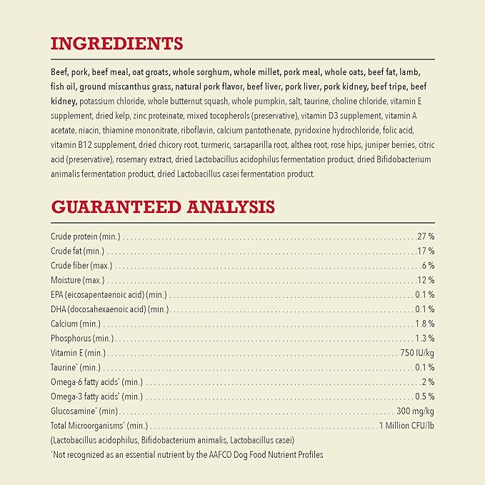 • A fiber-rich grain blend, featuring oats, sorghum and millet, plus pre- and probiotics for dogs, helps provide dog digestive support, and naturally occurring Omega-3 & Omega-6 fatty acids help support healthy skin and a shiny coat