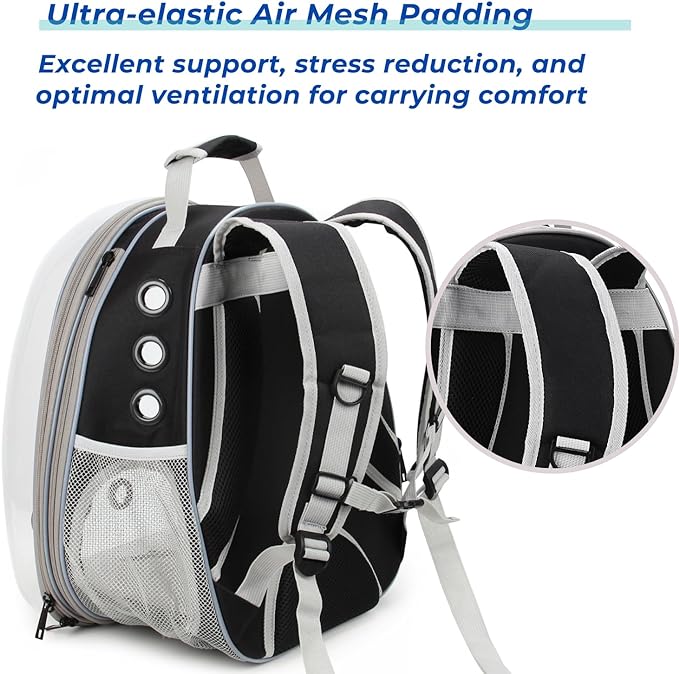 • 🐱Our cat backpack features 9 large ventilation holes on both sides and front, with added expandable anti-scratching netting for maximum breathability and fresh air - perfect for outdoor adventures.