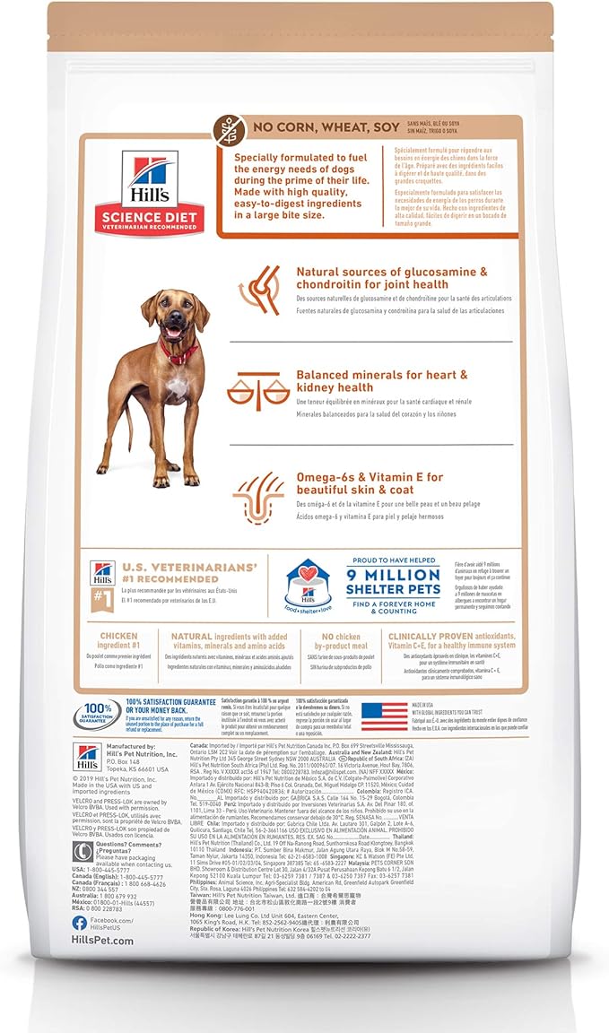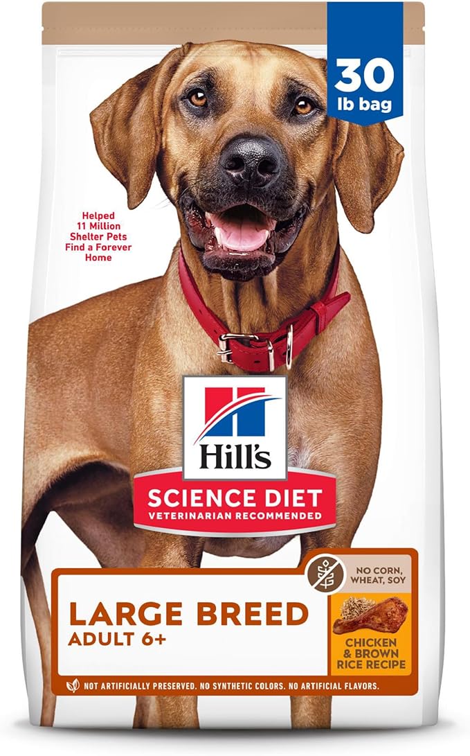 Hill's Science Diet Large Breed, Senior Adult 6+, Large Breed Senior Premium Nutrition, Dry Dog Food, No Corn, Wheat, Soy Chicken & Brown Rice, 30 lb Bag