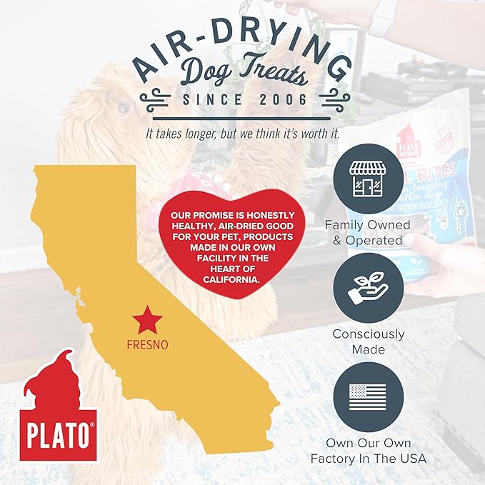 • ESSENTIAL VITAMINS & MINERALS - Natural ingredients that nourish your dog’s bodily functions. PLATO treats are high in nutrition & fortified with vitamins & minerals to keep your dog feeling great. PLATO bites can be consumed by all breeds, sizes & ages.