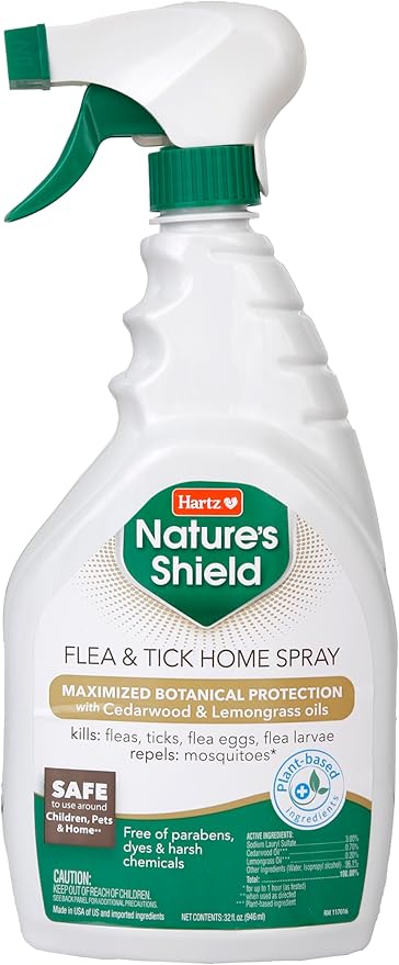 Hartz Nature’s Shield Flea & Tick Home Spray, Natural and Effective Flea & Tick Prevention and Home Protection with Cedarwood and Lemongrass Oil, 32 Ounces