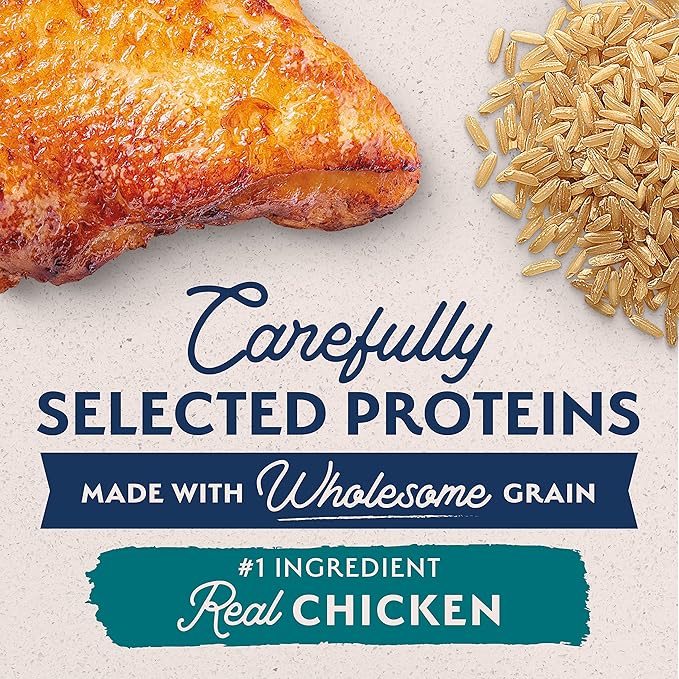 • CHICKEN IS THE FIRST INGREDIENT providing essential protein and amino acids to help maintain strong muscles; Brown Rice is included as a healthy and rich source of fiber for digestive health; Contains (1) 4-Pound Bag