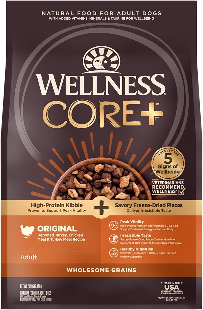 Wellness CORE+ Grained Dry Dog Food, Original Turkey & Chicken with Freeze Dried Turkey Recipe, 20 Pound Bag
