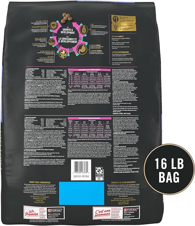 Purina Pro Plan Sensitive Skin and Stomach Puppy Food Lamb and Oat Meal Formula - 16 lb. Bag