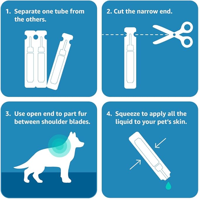 Amazon Basics Flea, Tick & Mosquito Topical Treatment for Medium Dogs (11-20 pounds), 6 Count (Previously Solimo)