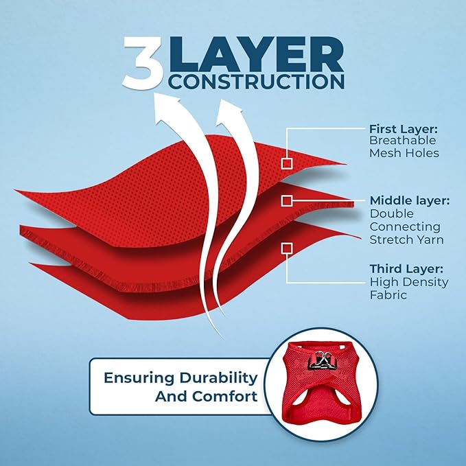 • ALL WEATHER MESH: Made with a soft, breathable air mesh, this lightweight pet harness is perfect for walks all year round.