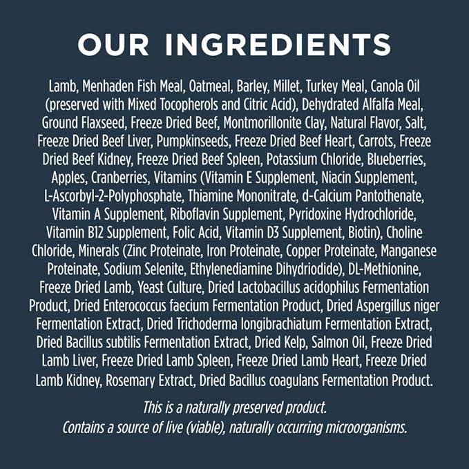 • WHOLE GRAIN DOG FOOD WITH FREEZE DRIED RAW: Instinct Raw Boost natural dry dog food combines high protein, whole grain kibble with all natural bites of freeze dried raw beef. Grass fed lamb is the #1 ingredient.