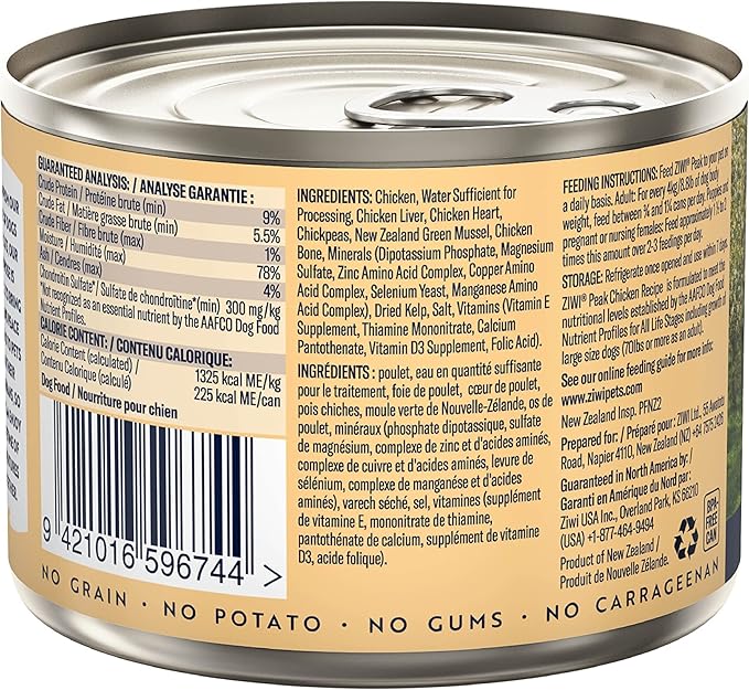 ZIWI Peak Canned Wet Dog Food – All Natural, High Protein, Grain Free, Limited Ingredient, with Superfoods (Chicken, Case of 12, 6oz Cans)