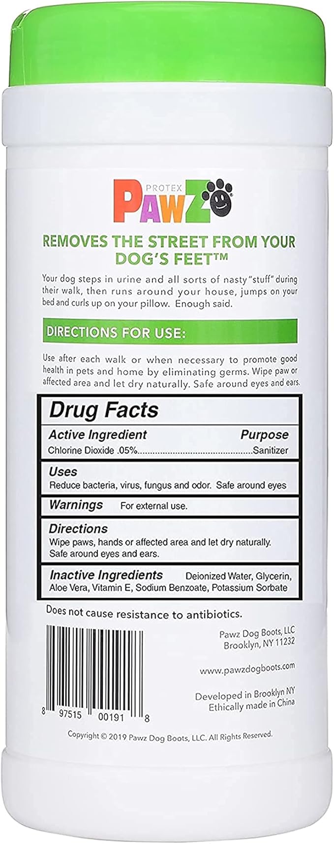 PAWZ Protex SaniPaw Odor Eliminating Dog Paw Wipes (60 Wipes) Cleansing Dog Grooming Wipes, Simple & Safe Lickable Ingredients - Paw Cleaner for Dogs, Pet Wipes