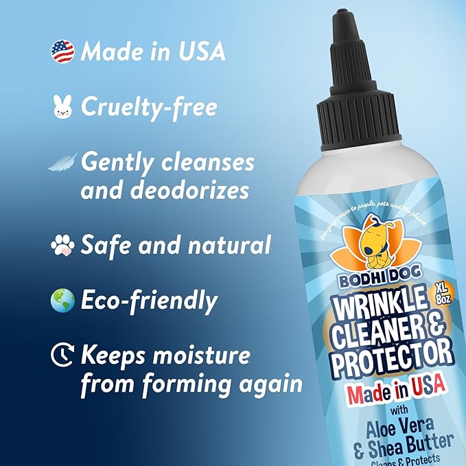 Bodhi Dog Wrinkle Cleaner and Protector | Extra Large 8oz | Soother & Protect Wrinkles & Skin | Stain Remover & Anti Itch for Bulldogs & Pugs | Made in The USA