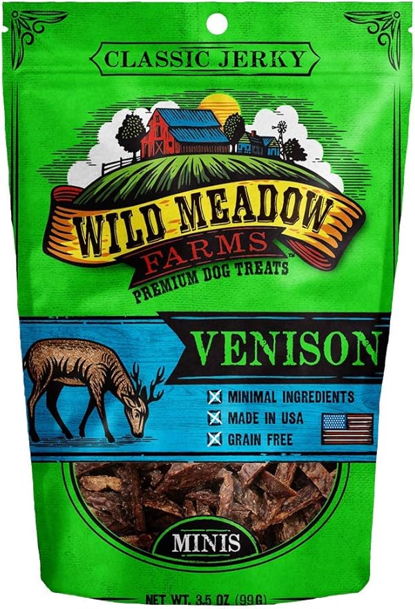 Wild Meadow Farms - Classic Venison Minis, Soft Jerky Training Treats for Dogs, Grain-Free, All-Natural & Perfectly Sized for Training, High-Value Rewards in a Convenient 3.5 Ounce Pouch