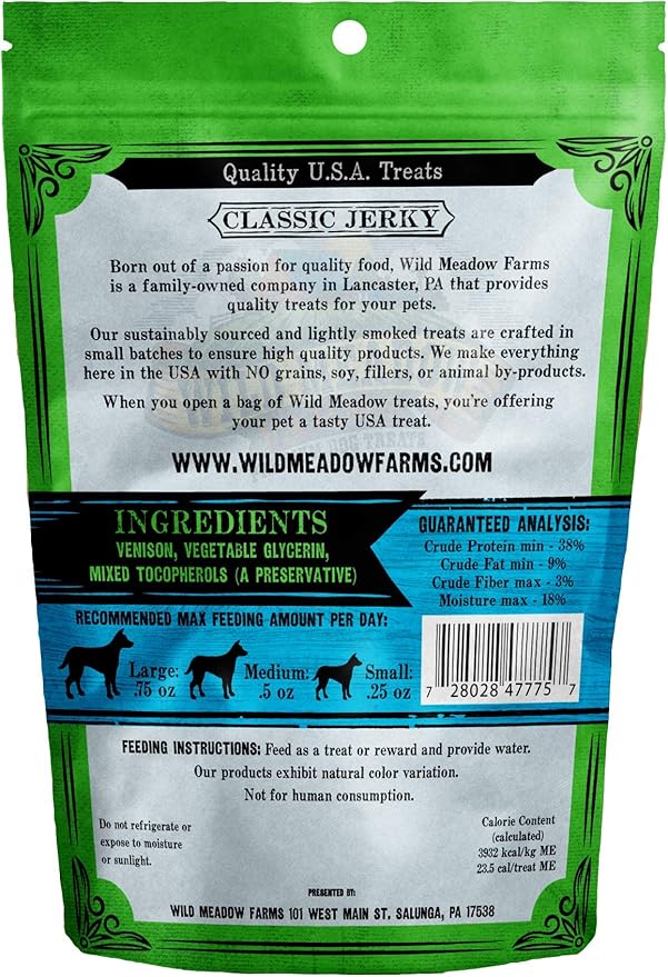 Wild Meadow Farms - Classic Venison Bites, Soft Jerky Treats for Dogs, Grain-Free & All-Natural, Ideal for Training, Portioning, and High-Value Rewards for All Breeds & Ages - 3.5 Ounce Pouch