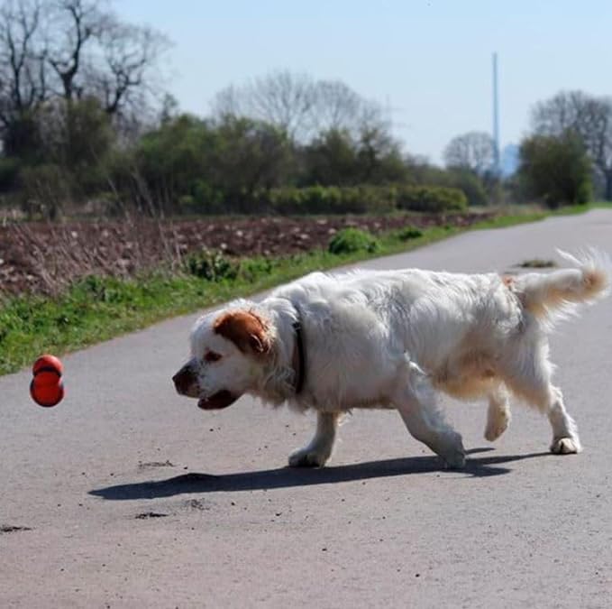 • Ultra Tumbler: Designed to engage you dog's natural chase instinct, this exciting fetch toy tumbles around on the ground in an erratic tumbling motion that dogs love; Great for land or water play