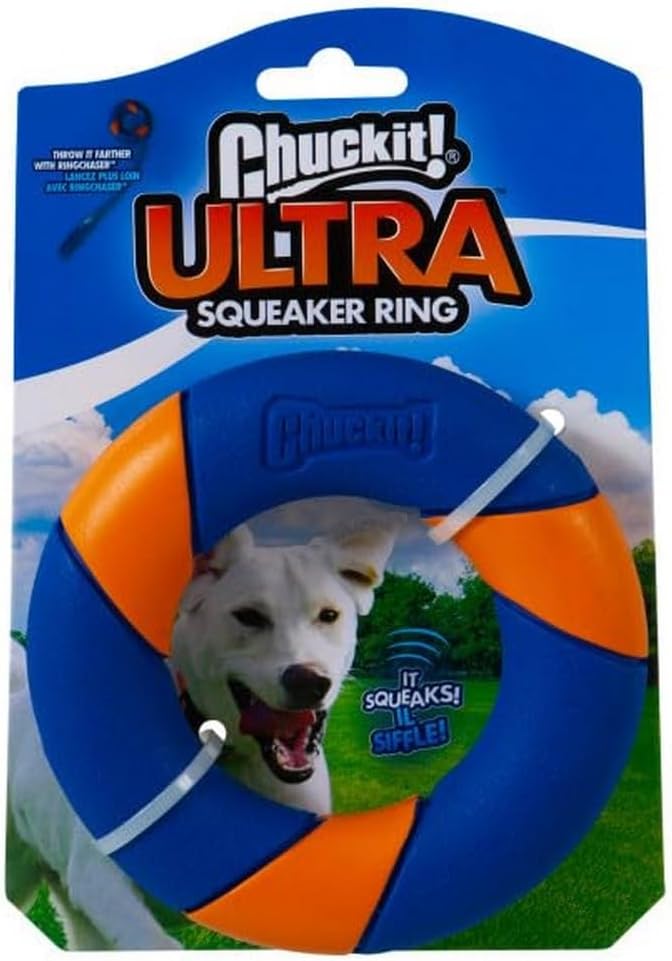 Chuckit! Ultra Squeaker Ring Dog Toy, Outdoor Fetch and Chase Toy for All Breed Sizes, multi-color