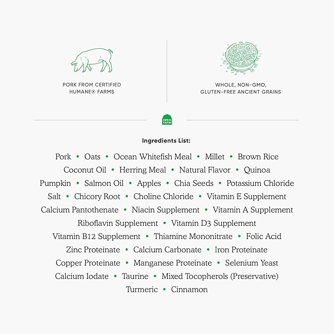 Open Farm Ancient Grains Dry Dog Food, Humanely Raised Meat, Wholesome Grains, No Artificial Flavors or Preservatives (Farmer's Table Pork Ancient Grain, 11 Pound Pack of 1)