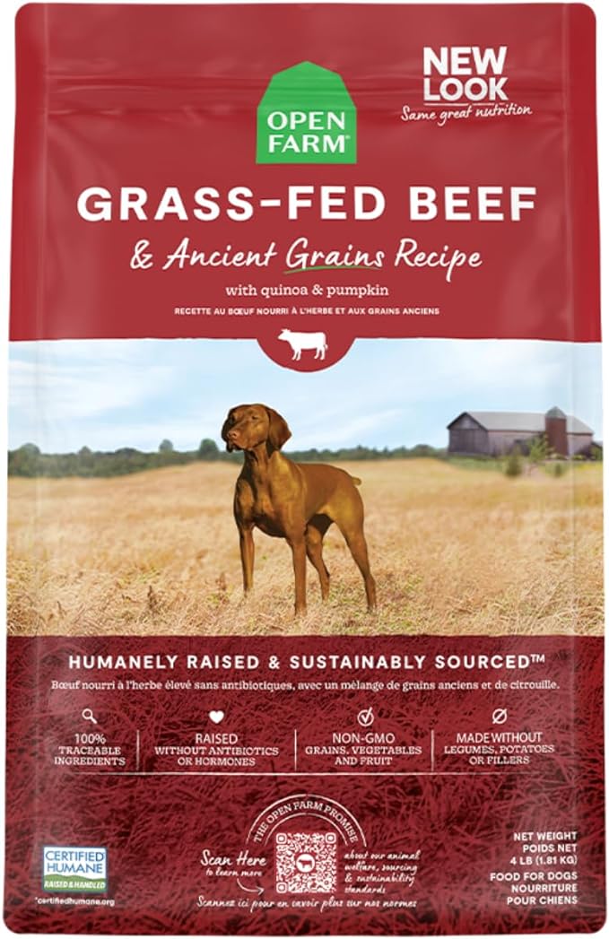 Open Farm Ancient Grains Dry Dog Food, Humanely Raised Meat Recipe with Wholesome Grains and No Artificial Flavors or Preservatives (Grass-Fed Beef Ancient Grain, 22 Pound (Pack of 1))
