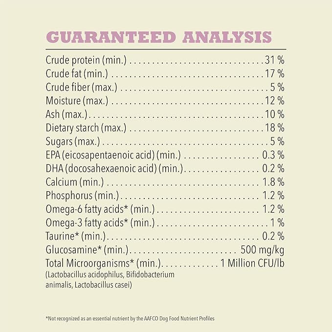• Made with lamb and lamb liver, this grain free* dog food is carefully crafted with 65 percent** animal ingredients and 35 percent*** whole fruit, vegetables and nutrients to satisfy your dog’s cravings and help your dog be at its best