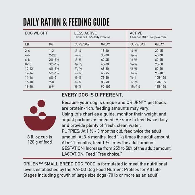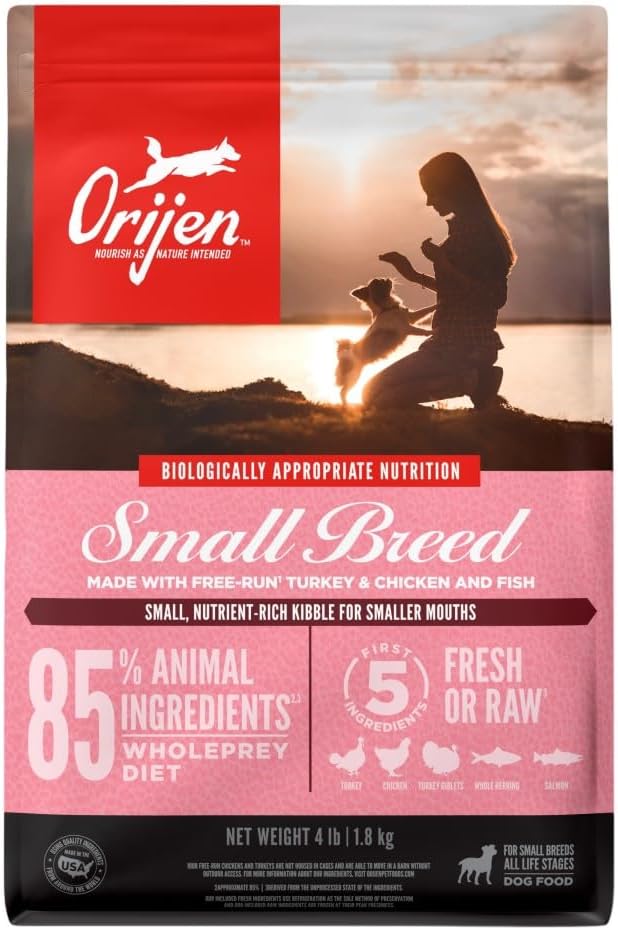 • One (1) 4 lb bag of ORIJEN Small Breed Grain Free* Dry Dog Food