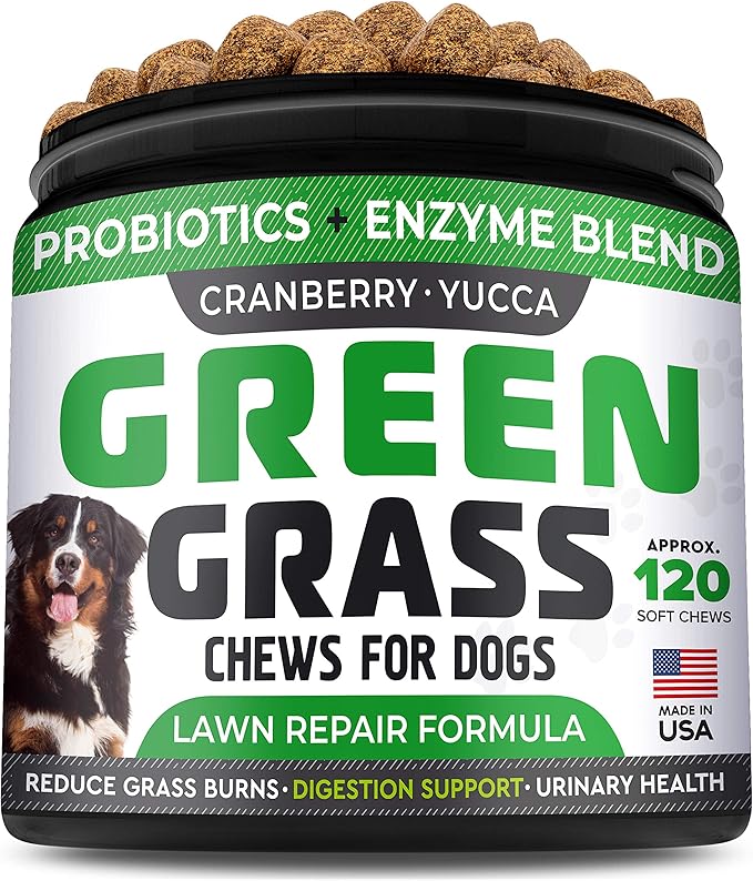 • Multi-Benefit Treats: Experience the extra perks with grass burn spot chews for dogs, which not only stop lawn burns & act as green grass saver but also enhance your dog's digestive well-being.