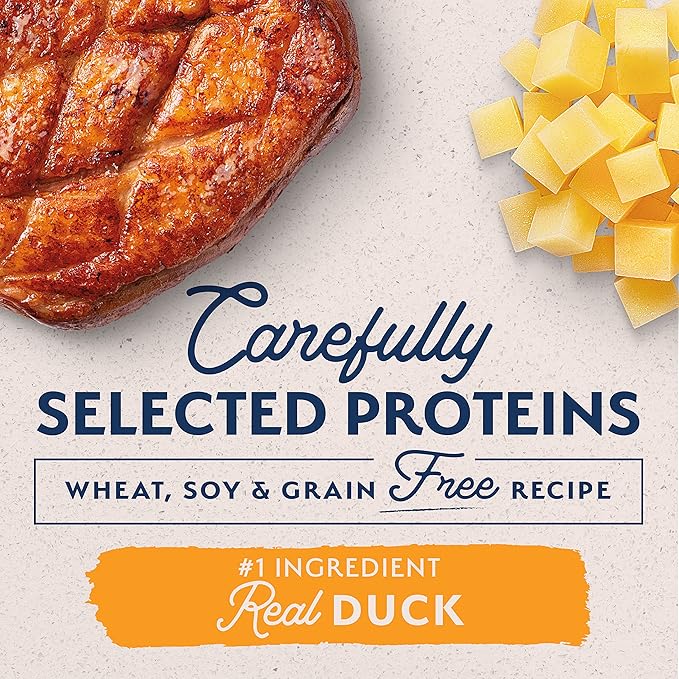 • DUCK IS THE SINGLE ANIMAL PROTEIN SOURCE providing essential protein and amino acids to help maintain strong muscles; Potatoes are included as a grain-free source of fiber to help support digestive health; Contains (1) 4-Pound Bag