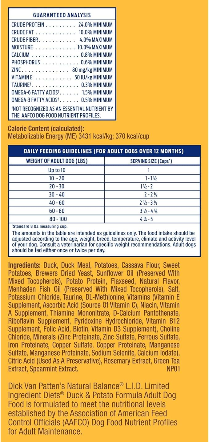 Natural Balance Limited Ingredient Diet Duck & Potato Adult Grain-Free Dry Dog Food 24-lb. Bag