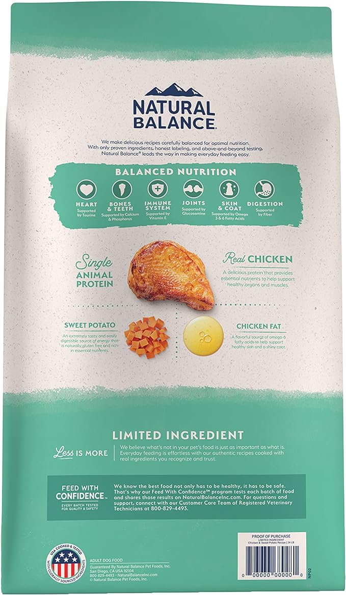 Natural Balance Limited Ingredient Adult Grain-Free Dry Dog Food, Chicken & Sweet Potato Recipe, 24 Pound (Pack of 1)
