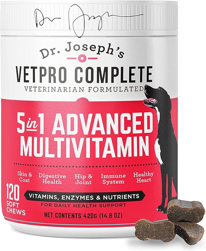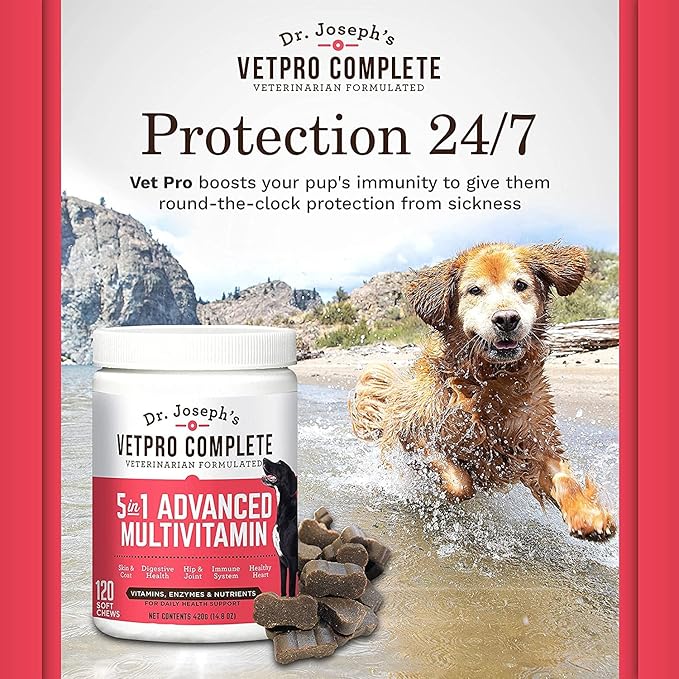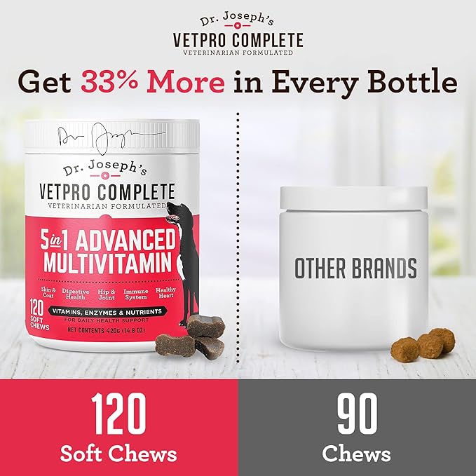 VetPro Dog Vitamins and Supplement Soft Chews with Probiotics, 120 Count, 5 in 1 Chewable Multivitamin for Puppy to Senior with Glucosamine for Hip and Joint Health, Immune System and Allergy Support