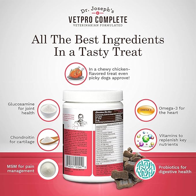 • VETERINARIAN FORMULATED - Our dog vitamins and supplements focus on five key areas. Dog probiotics for digestive function, dog skin and coat supplement, joint mobility, heart health and enhanced immunity. Formulated by a vet with over 30 years of experience, our multivitamins for dogs are a nutritional dog supplement to promote ideal functioning and longevity. Ideal puppy vitamins and senior dog vitamins.